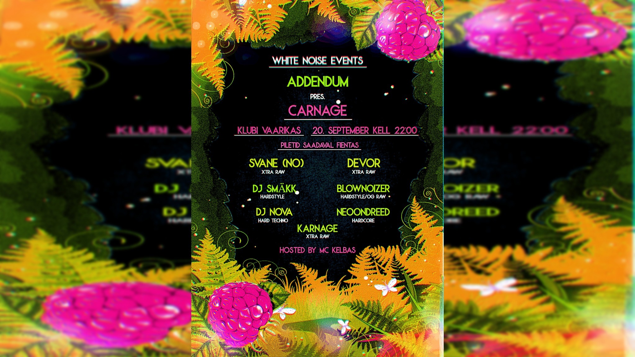 20. septembril avab Addendum: Carnage uksed sinna, kuhu vähesed julgevad astuda – Rawstyle’i ja Hardcore’i kõige tumedamatesse sügavustesse.